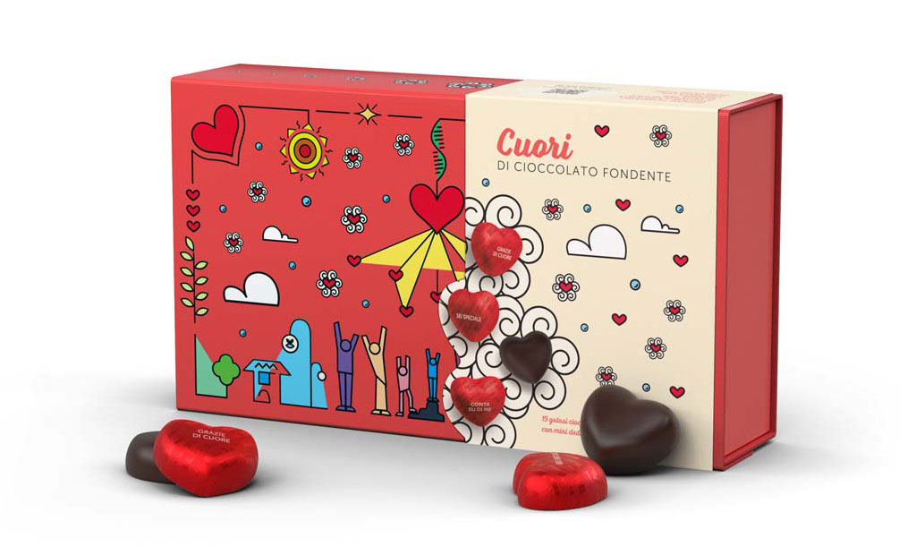 Ogni confezione contiene 15 cioccolatini di 14.8 g.